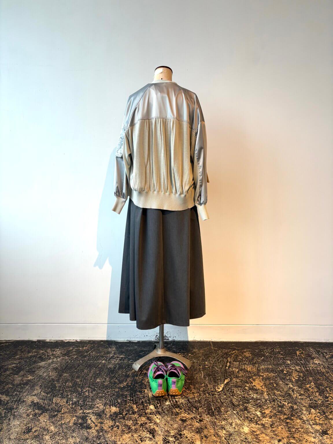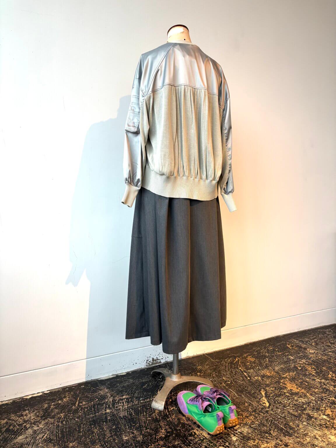 Satin cardigan ¥20900/One-piece ¥23100/Bag ¥39600/Sneaker ¥17000