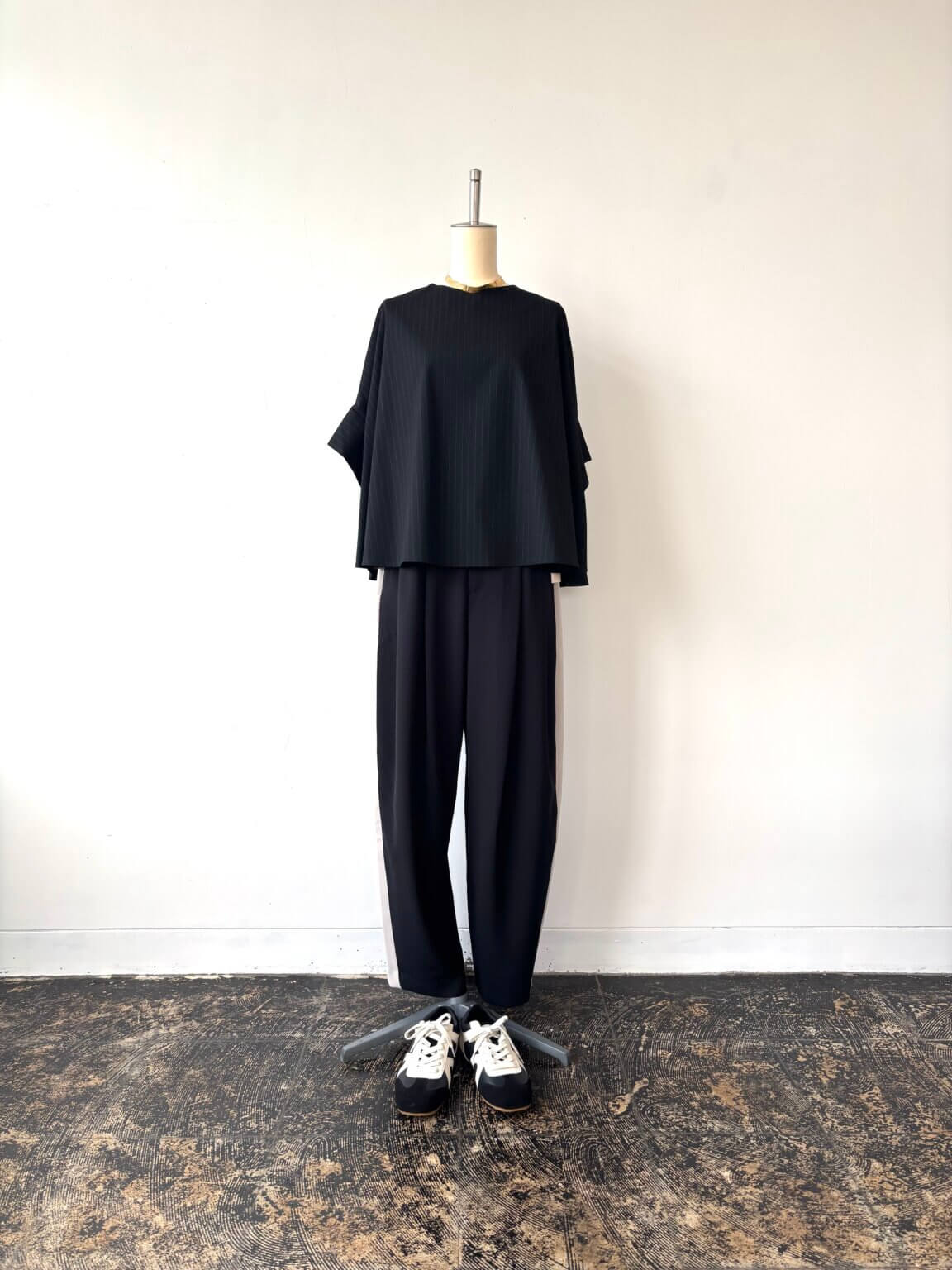 Stripe Tops ¥15400/Line Pants ¥18480/Sneaker