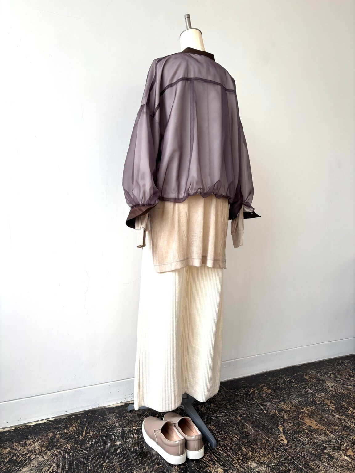 Sheer short blouson ¥20680/Tops ¥15400/Corduroy Lib pants ¥16500