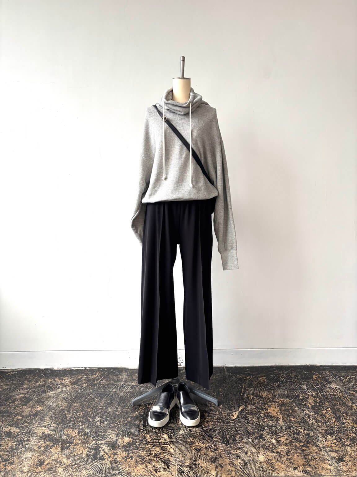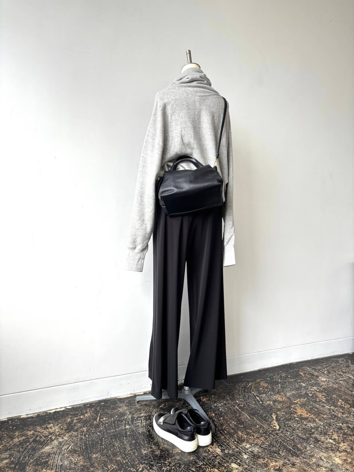 Volume neck sweat ¥16500/Center Press pants ¥26400/Bag ¥28600