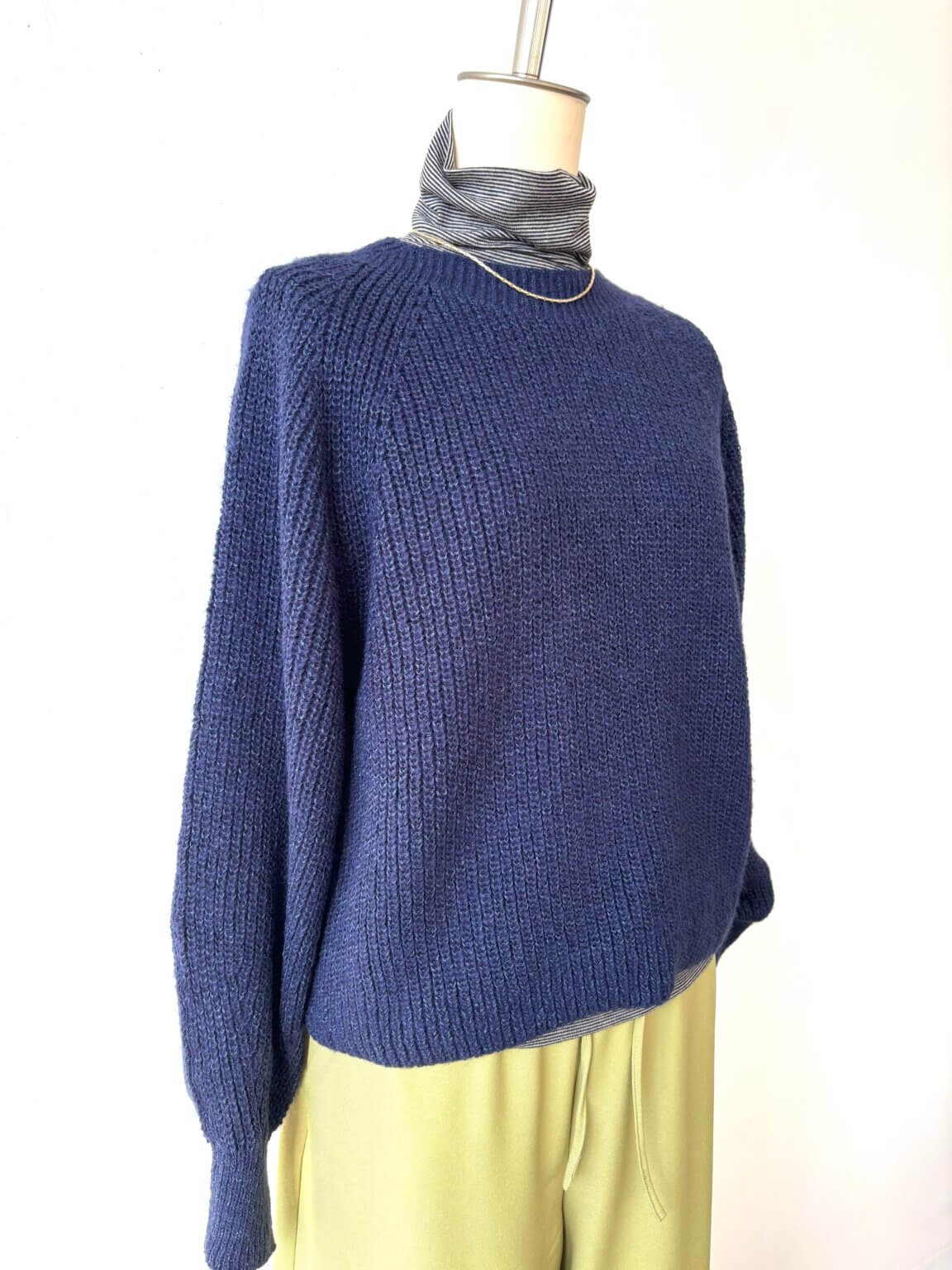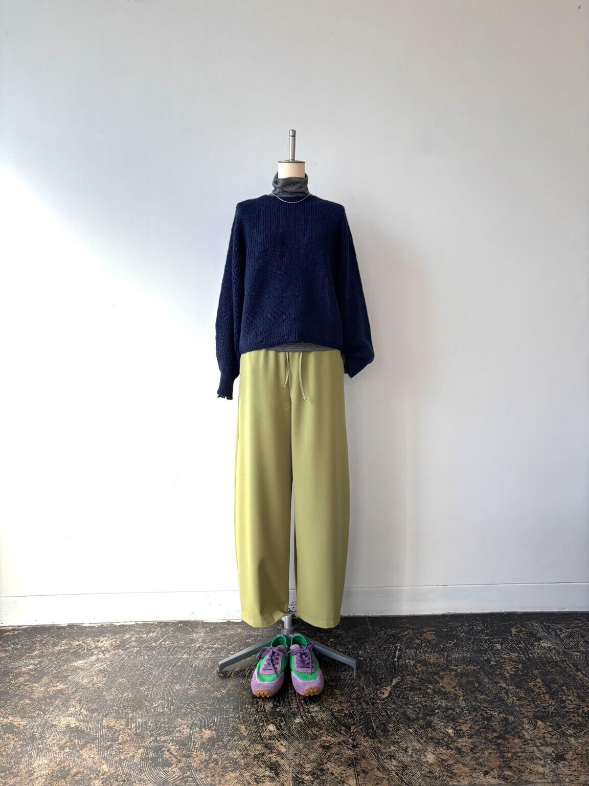 Knit ¥10890/Boarder High neck inner ¥9530/Pants ¥17380