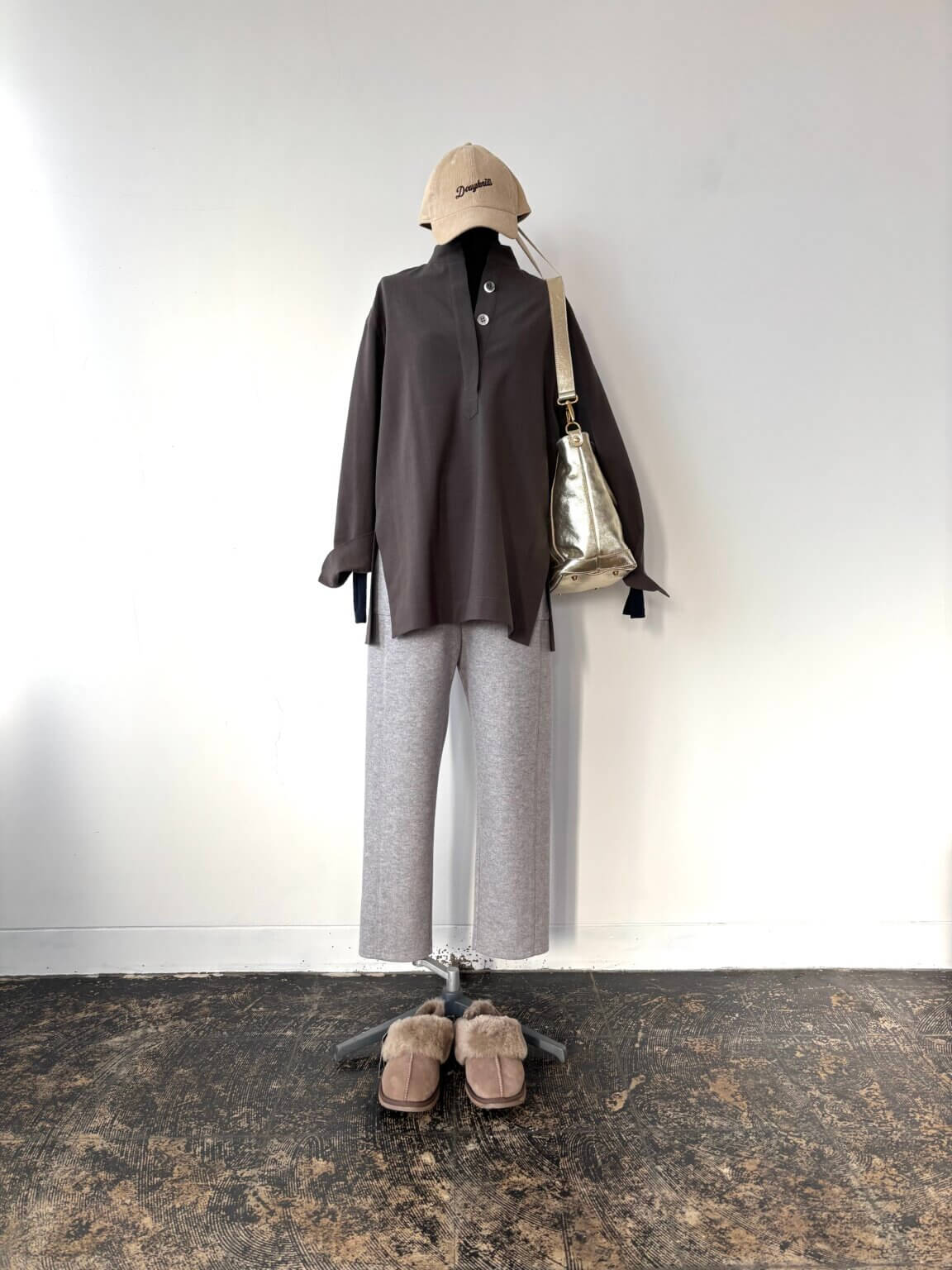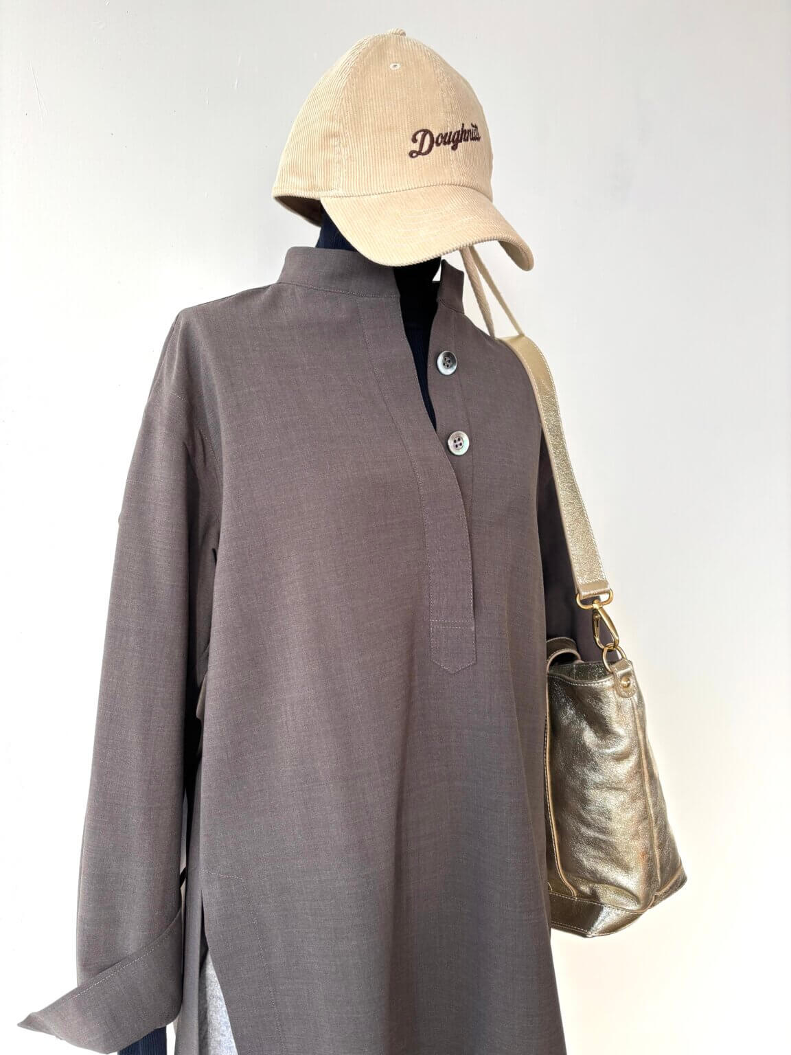 Cap ¥6050/No collar shirt ¥28600/Pants ¥16500/Bag ¥40700/