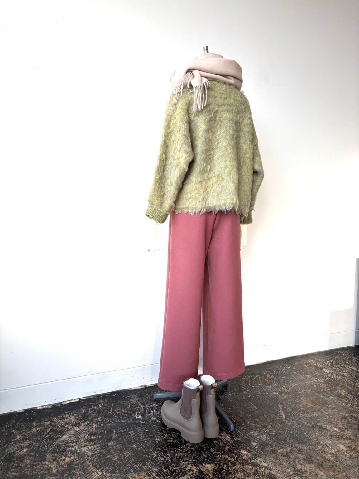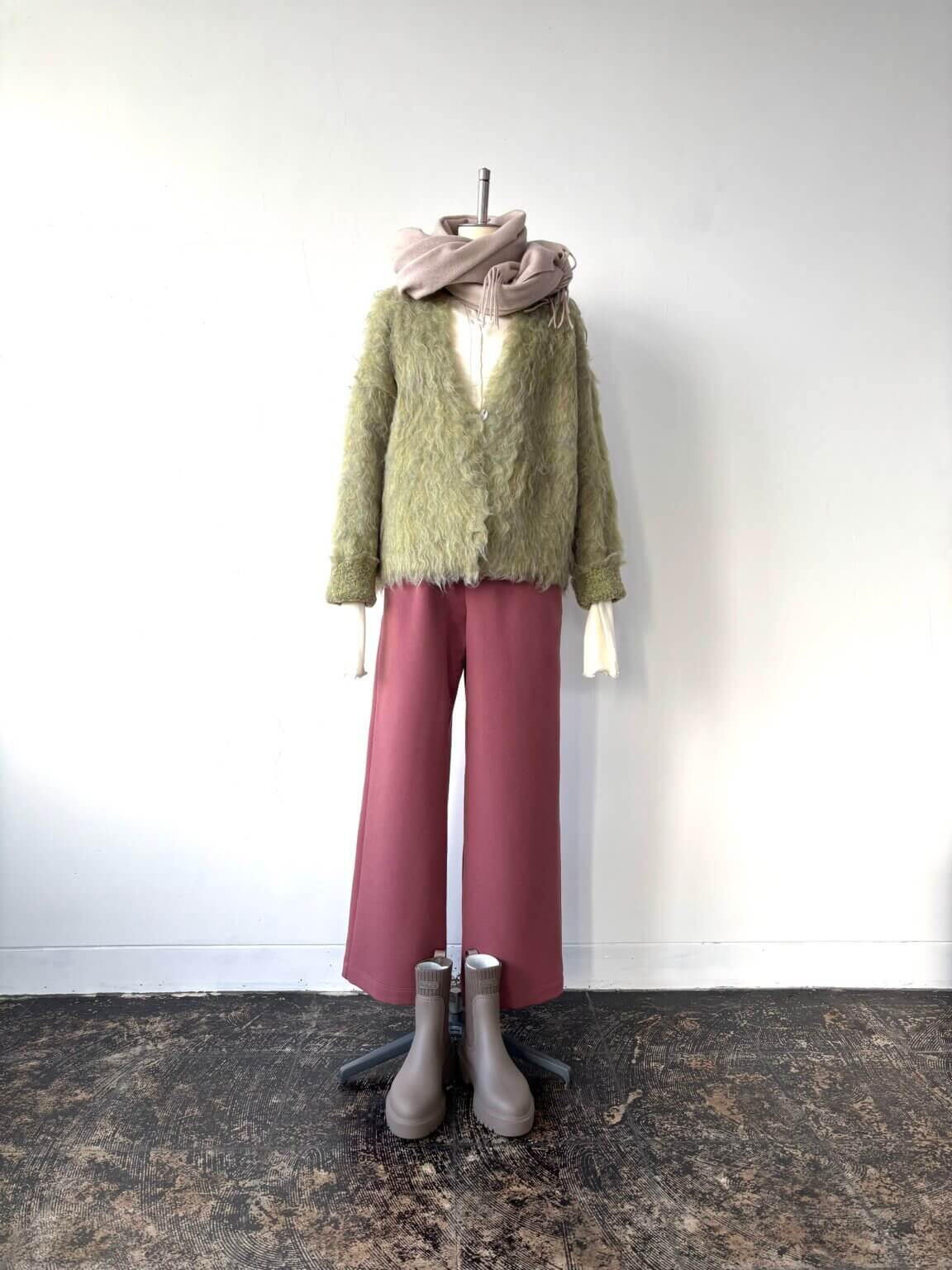 Cardigan ¥16500/Inner ¥13970/Stole ¥9790/Pants ¥19580/Rain boots ¥17000