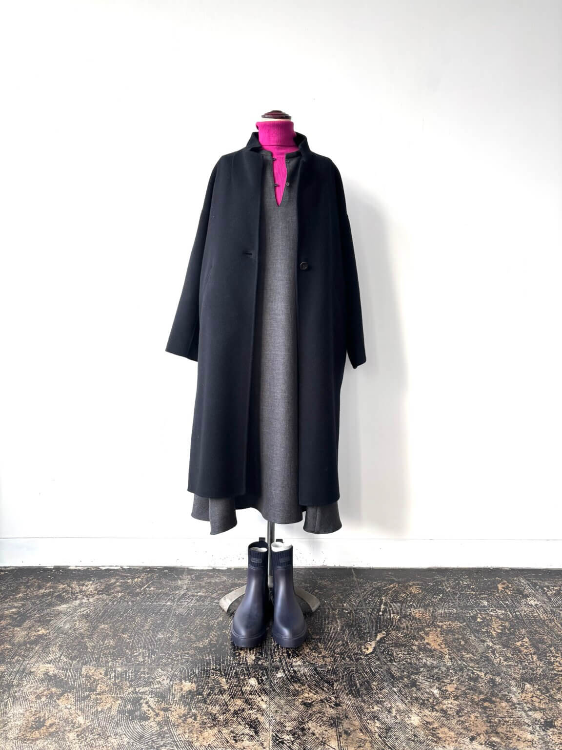 Coat ¥49500/One-piece ¥19910/High neck knit¥10890/Rain boots ¥17000