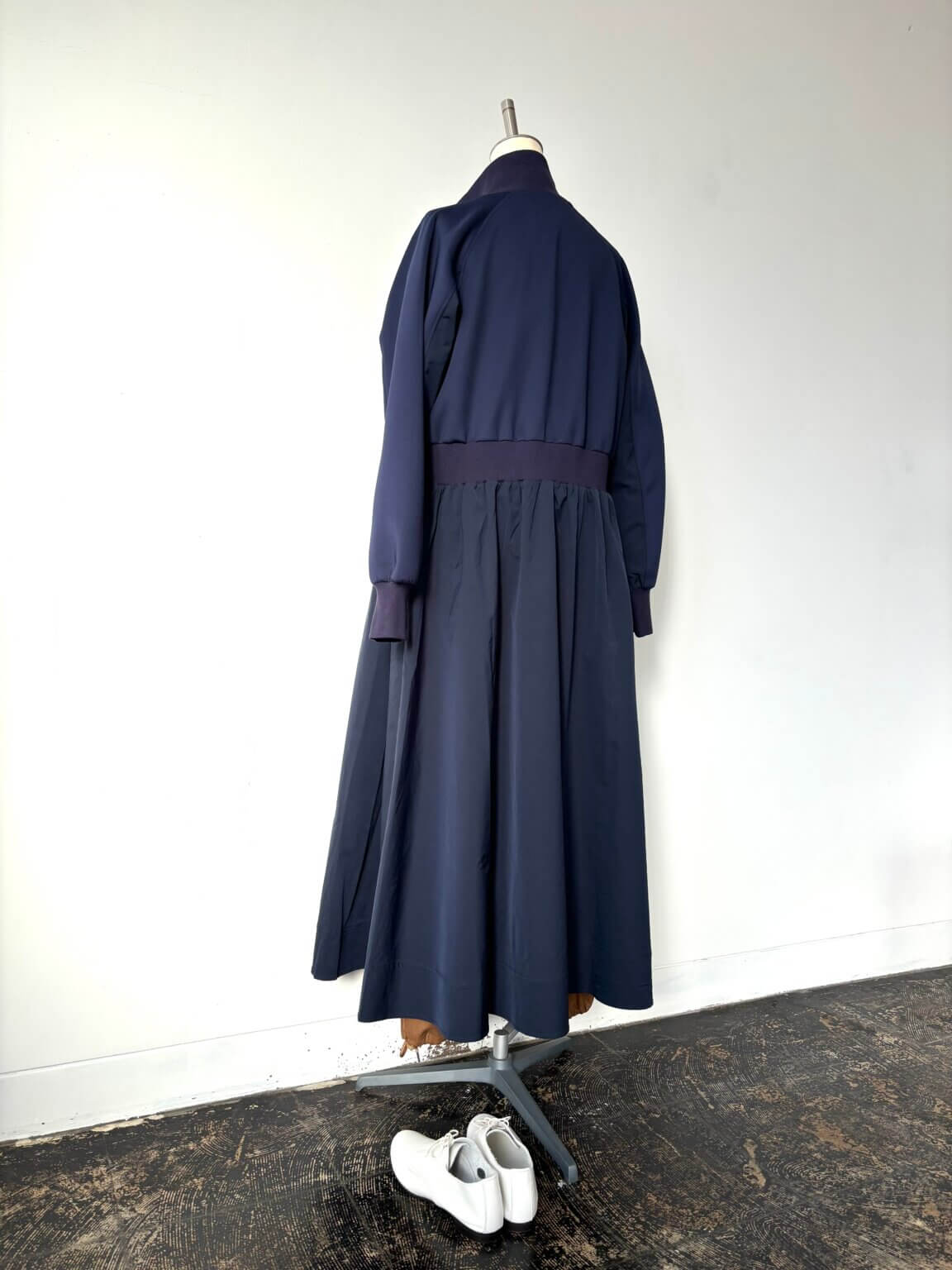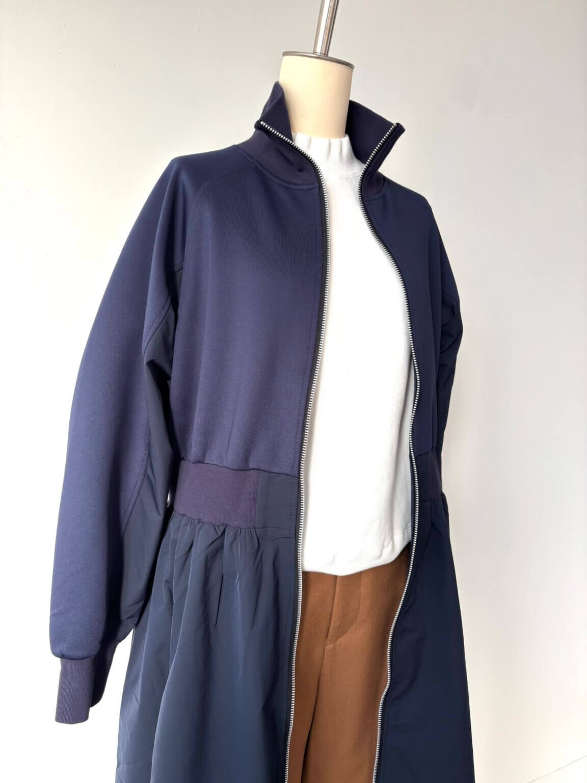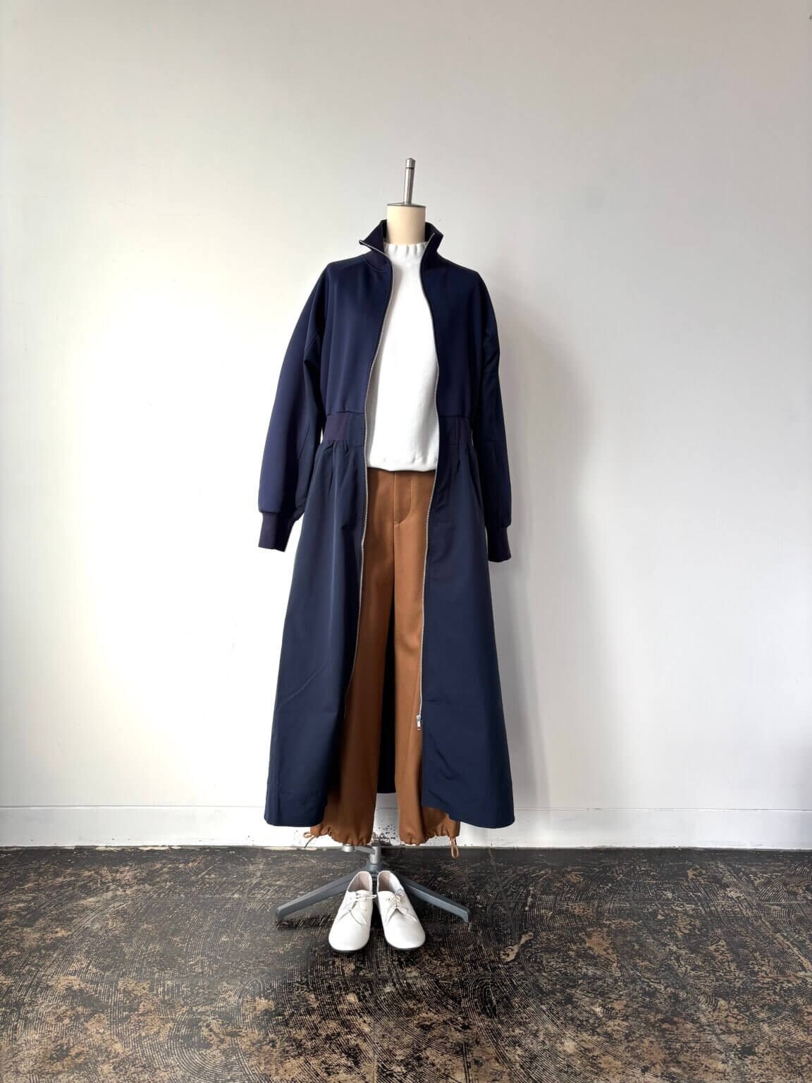 初春コートワンピースとしての出番復活のアイテム。スポーティにコンパクトスェットにカーゴパンツを合わせて KEY:ネイビー×ホワイト×キャメル 色