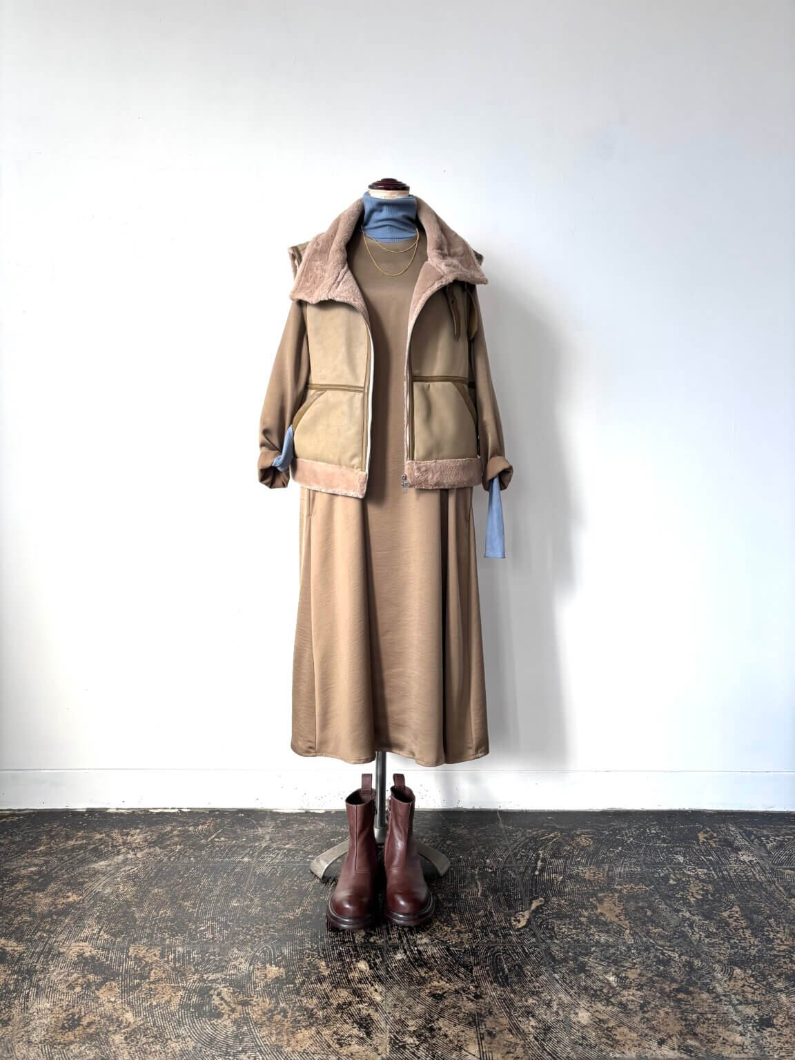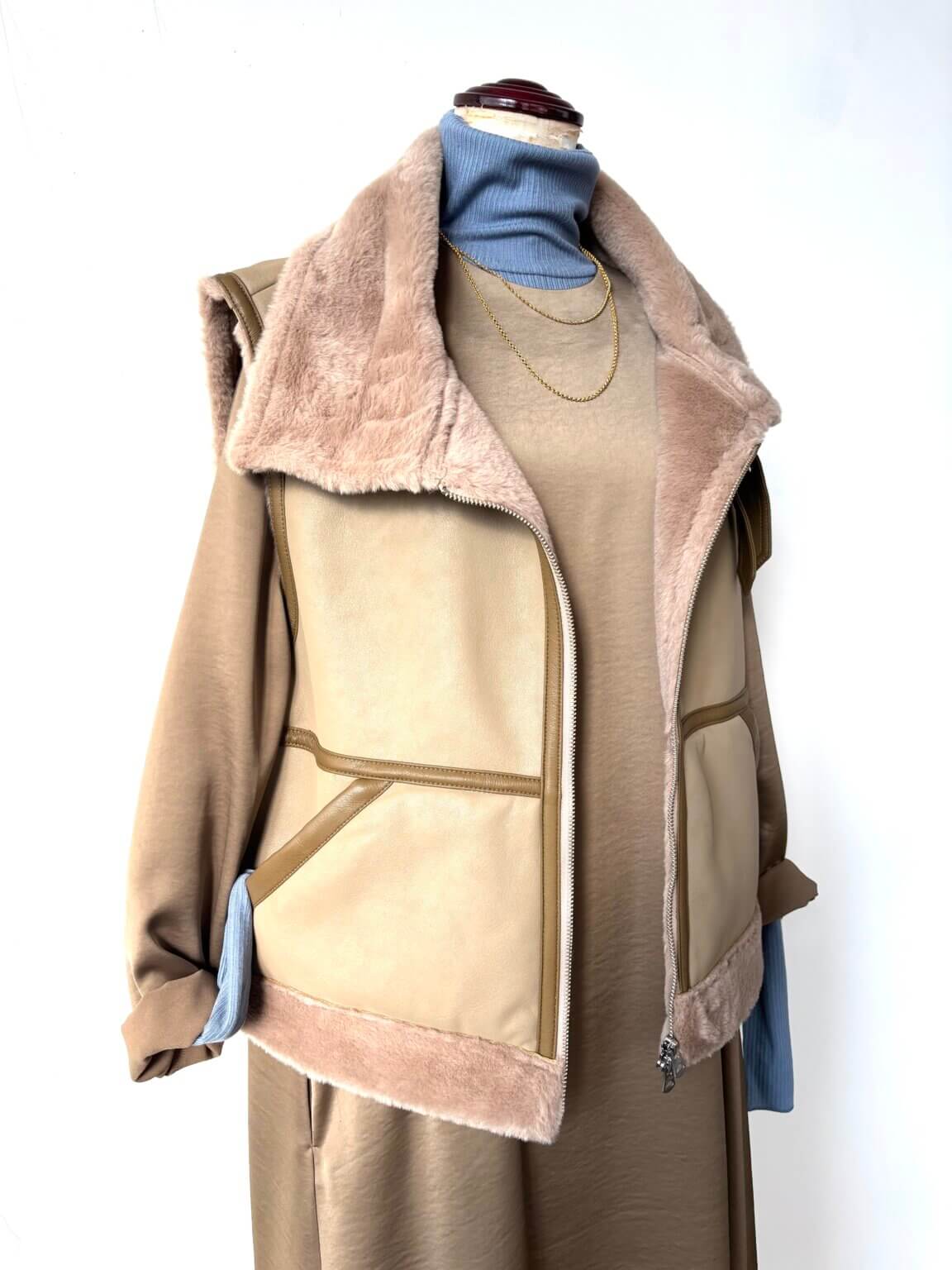 Eco mouton vest ¥25960 /Satin one-piece ¥22000