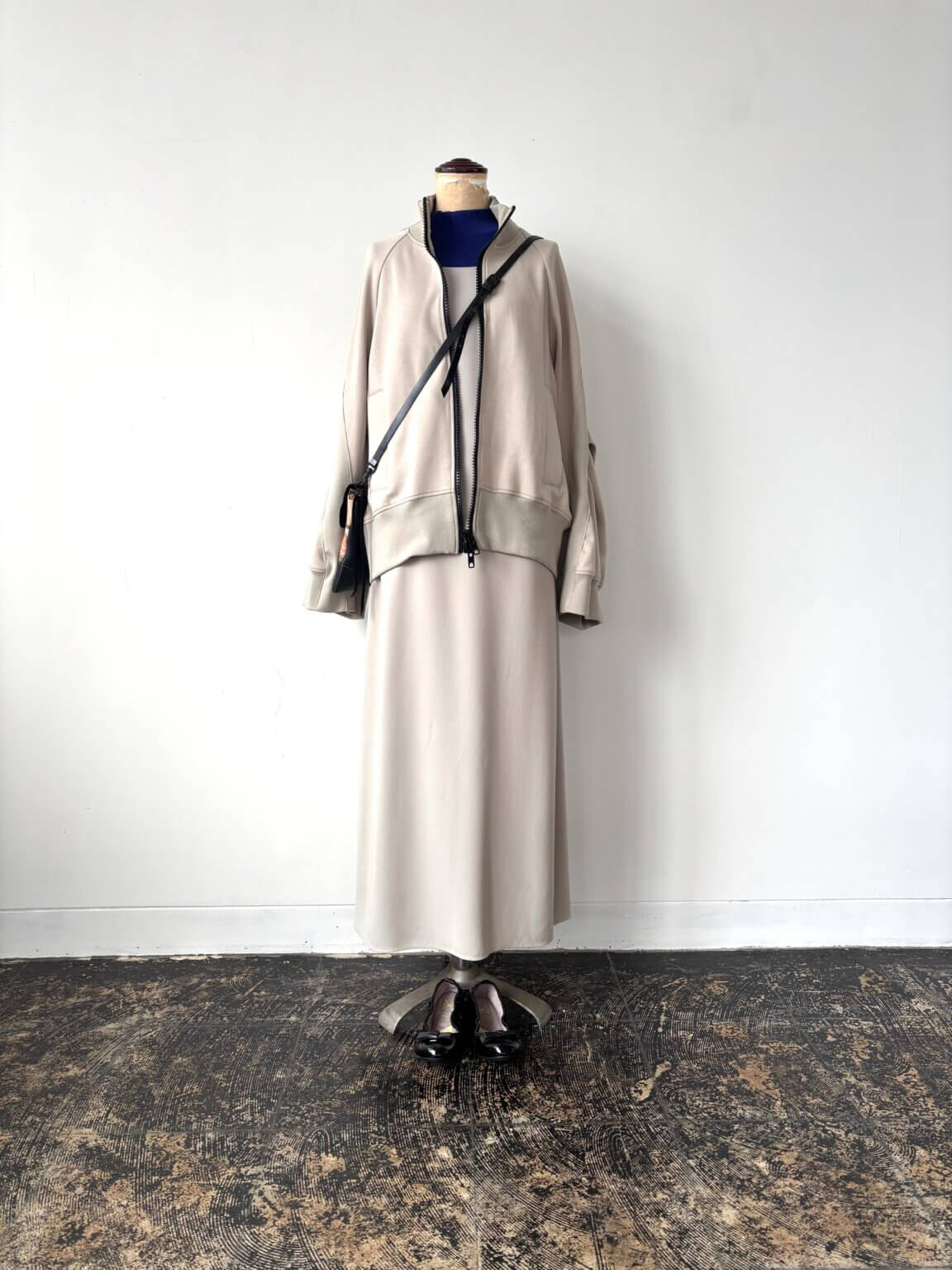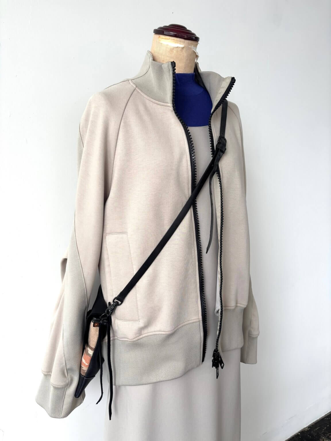 進化系ジャージの羽織にあえてワンピースを合わせるのがステキ スポーティもちょうどいい加減で取り入れると軽快さや若々しさになる大人加減 KEY:インナーの色