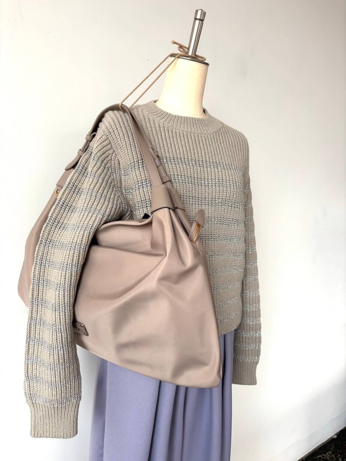 Ribbed knit sweater ¥18700/Pants ¥17600/Bag ¥34100