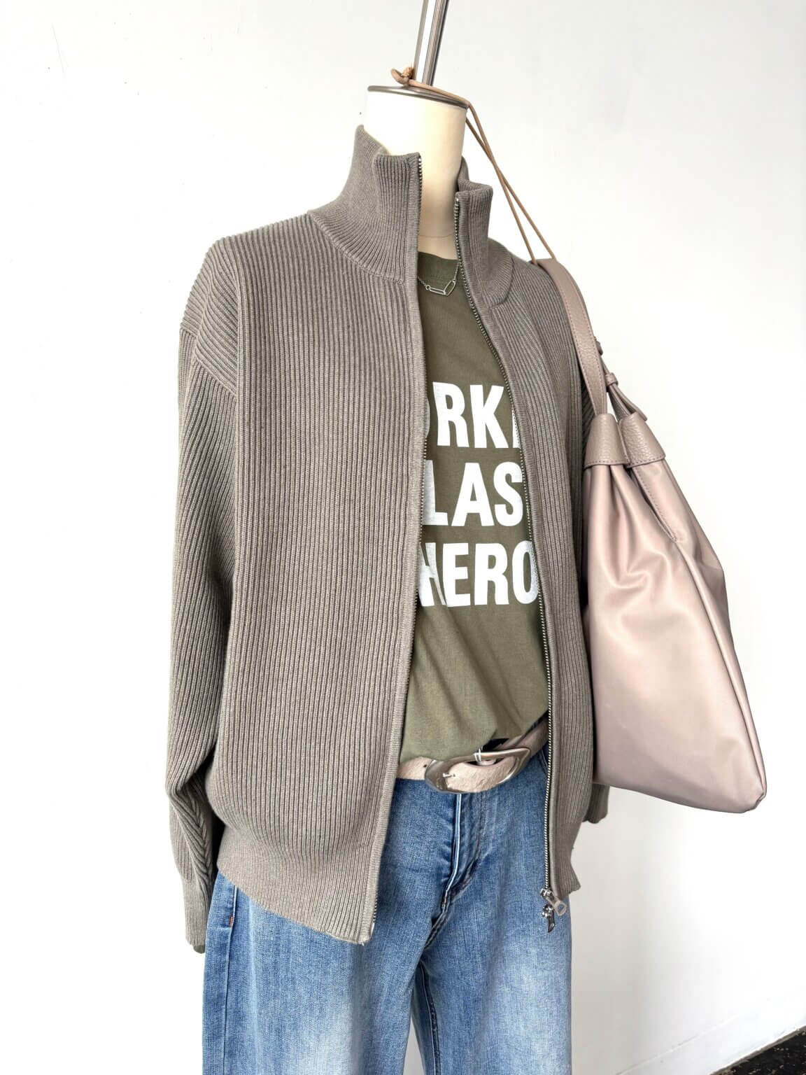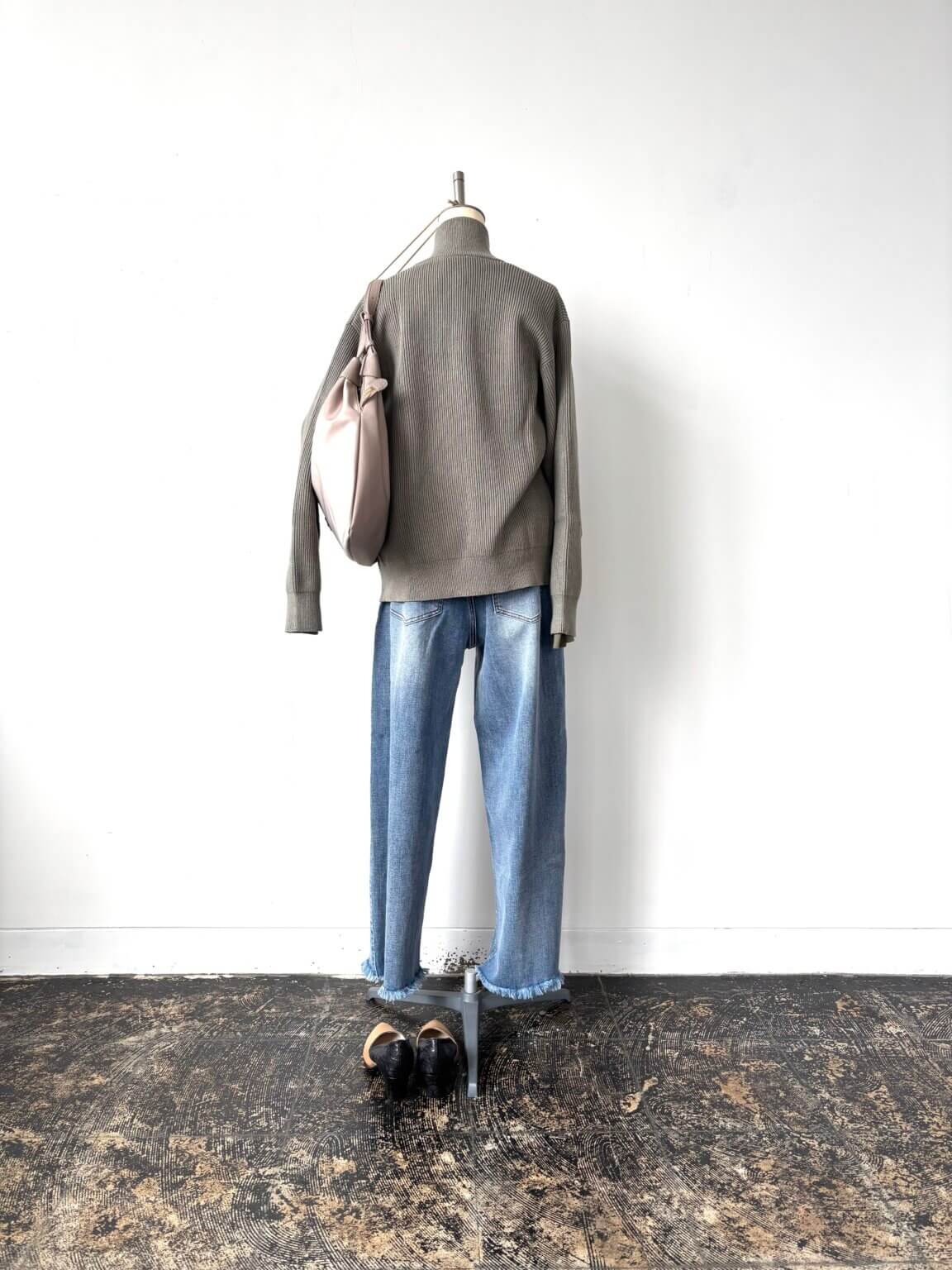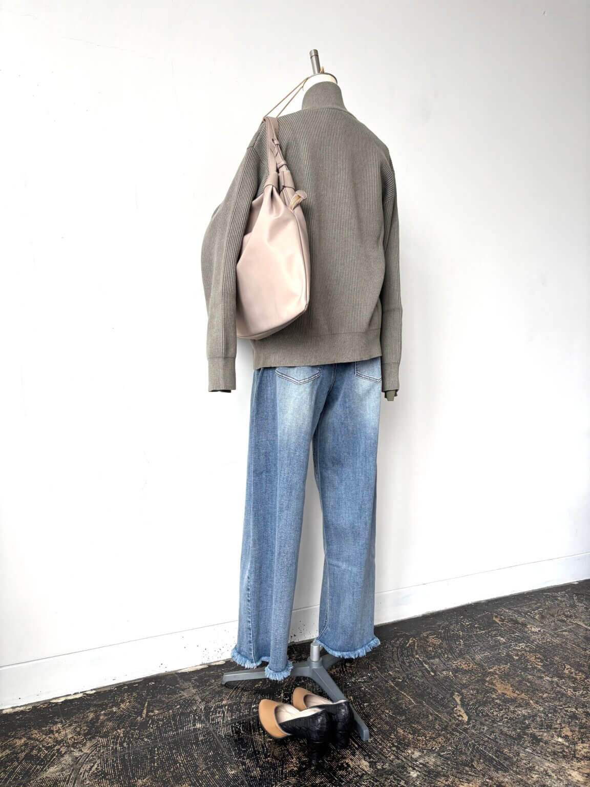 Lib Knit Parker ¥28600/Denim Pants ¥17600/T shirt ¥7590/Bag ¥34100