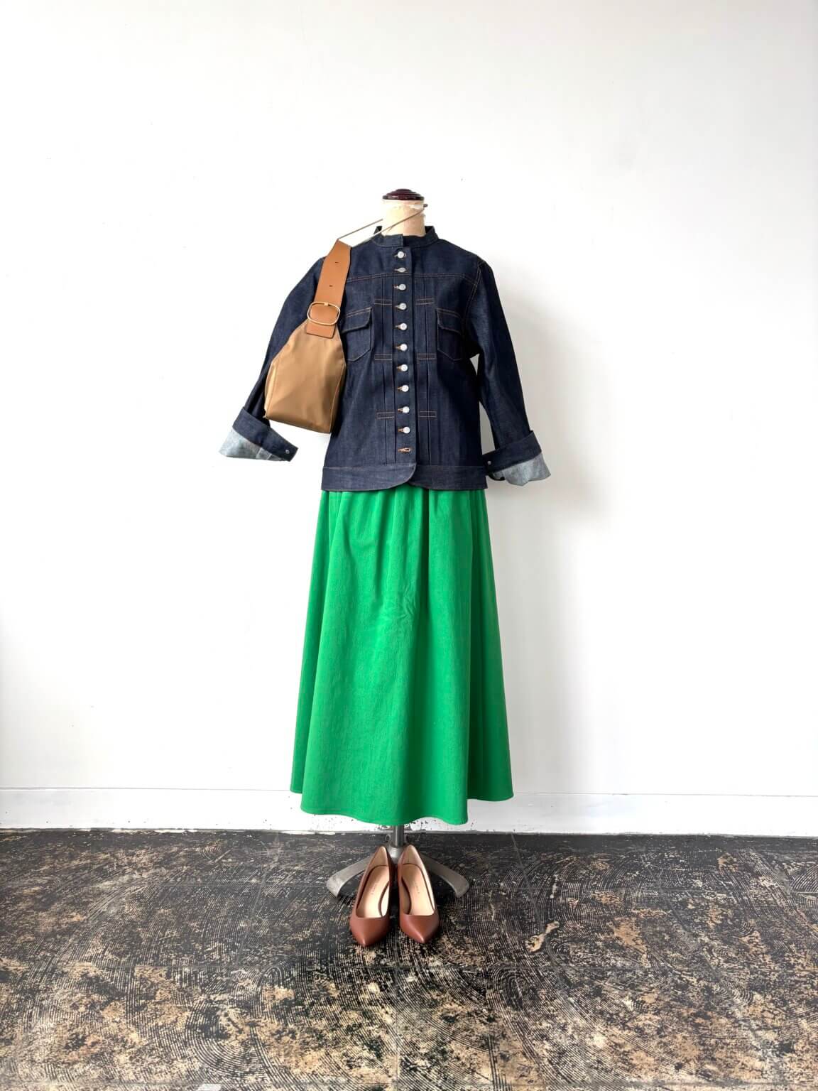 Denim jacket ¥30800/skirt ¥16280/Bag ¥23100