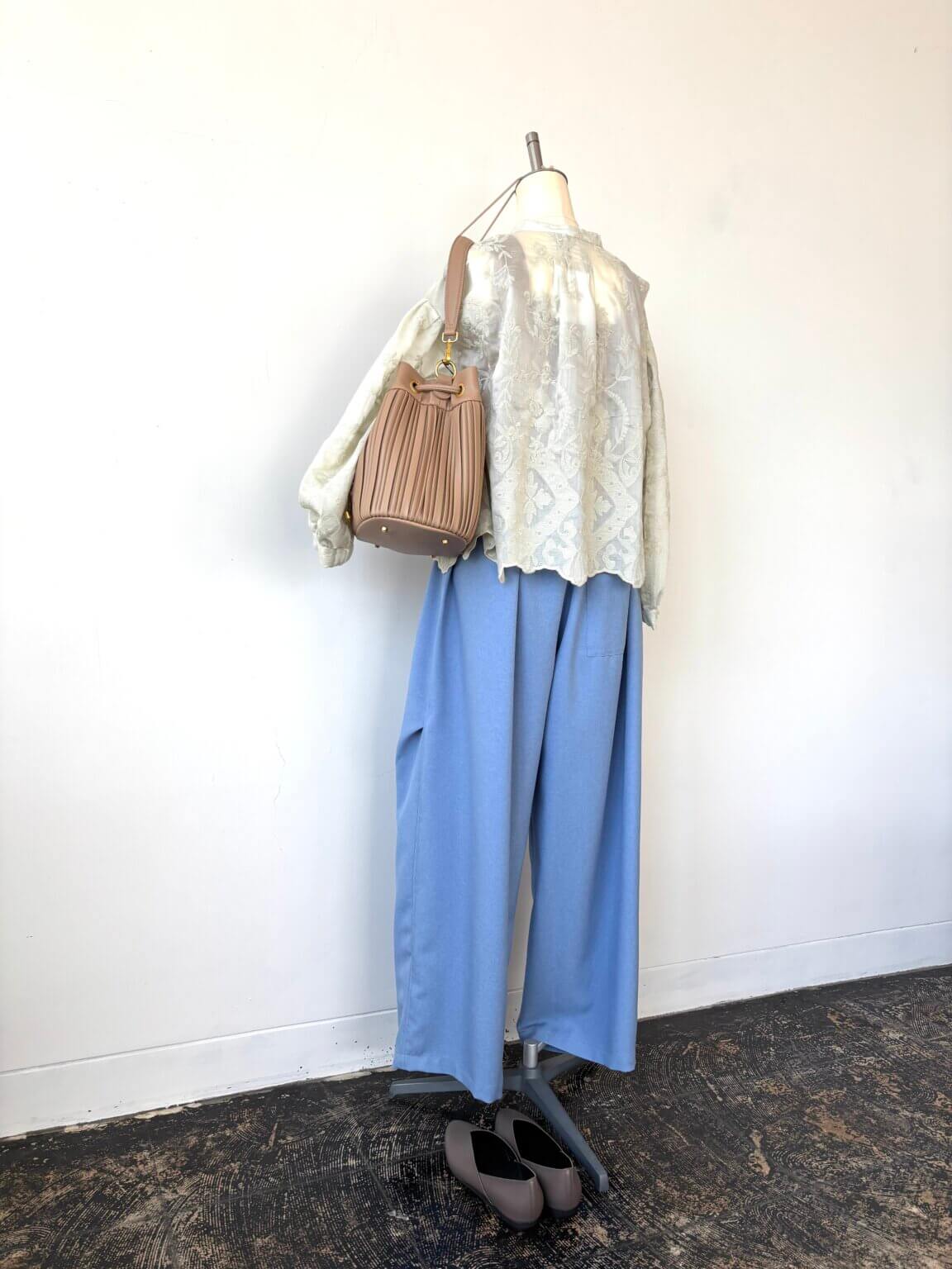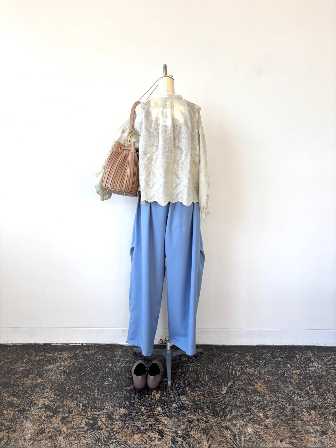クラフト感のある刺繍やレースやタックなどを着こなしに取り入れて シンプルな中にもディテール重視 KEY:ライトイエローとライトブルー