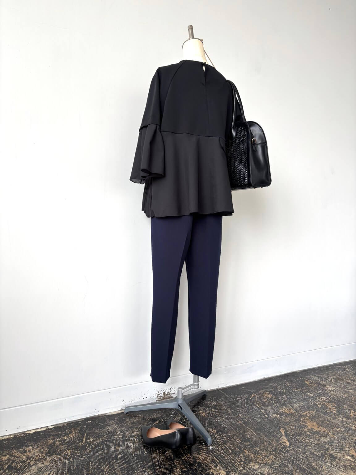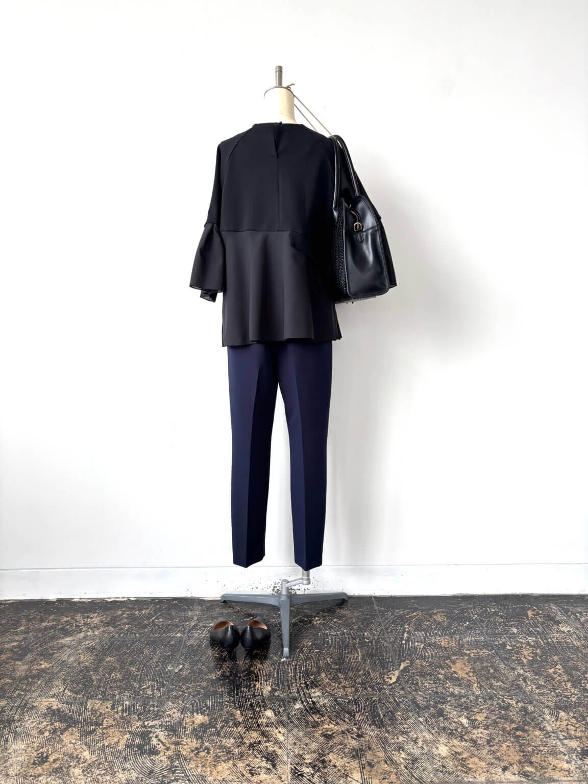 ブラック×ネイビーってニガテに思う方もいらっしゃるけど 靴とバッグもブラックにすると引き締めアップでステキ KEY:小物