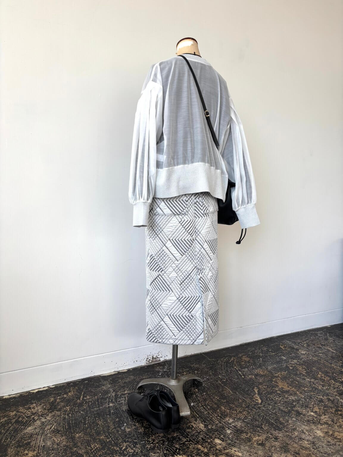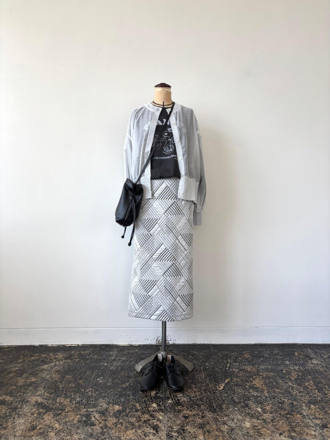 Sheer cardigan ¥14300/Vintage T shirt ¥15400/Skirt ¥18700
