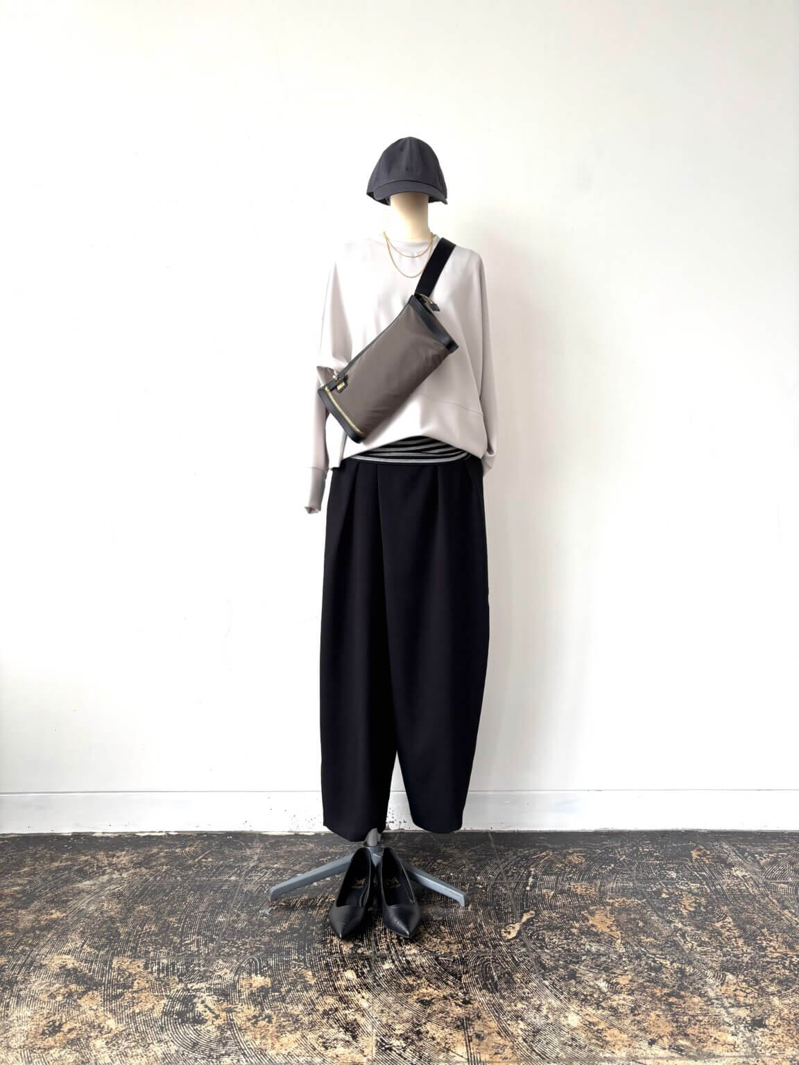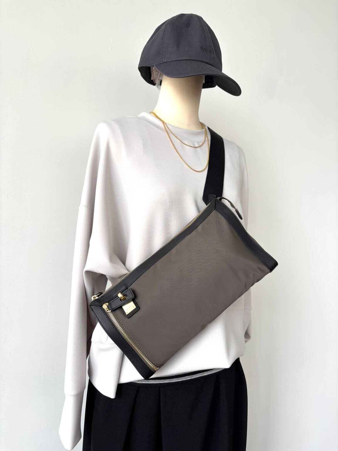 Cap ¥7480/Back zipper tops ¥12100/Pants ¥19800/Bag ¥25300