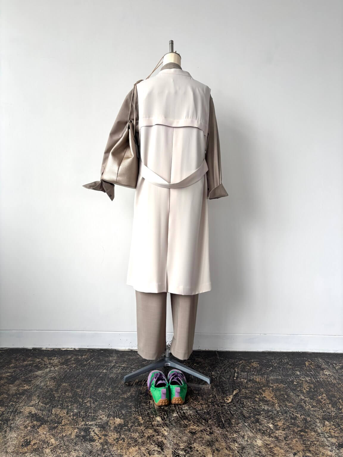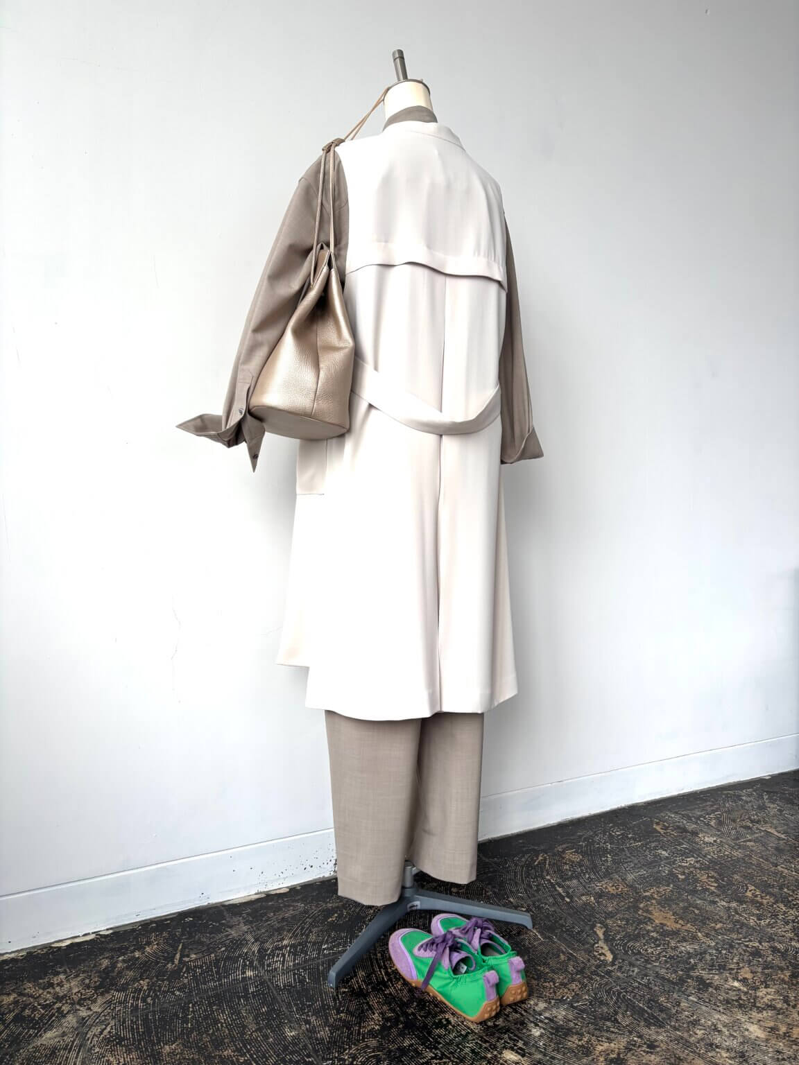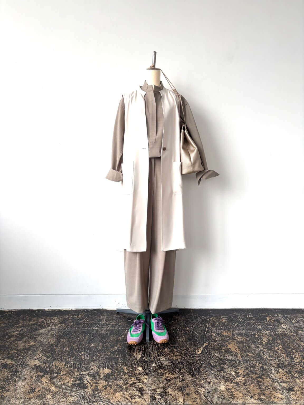 セットアップ × ジレ 着こなしのニュアンスを変える効果的ジレの活用 ロング丈も小柄さんにも合わせられるデザイン KEY:カラフルスニーカー