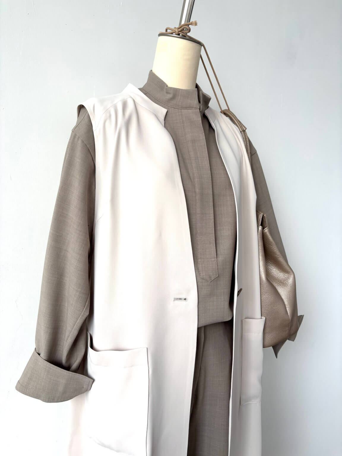 Gilet ¥24200/Shirts ¥28600/Tuck Pants ¥28600(setup)/Bag ¥29700
